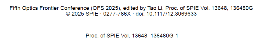 Proceedings Volume 13648, Fifth Optics Frontier Conference (OFS 2025); 136480G (2025)